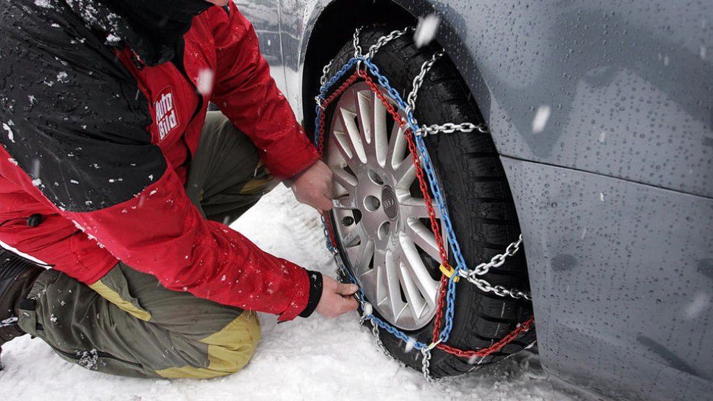 - Mit Schneeketten in der Spur bleiben!
